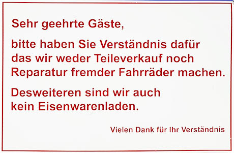 Die Ausgabe der Tagesräder erfolgt bis 13:00 Uhr. Nur Barzahlung vor Ort möglich! |